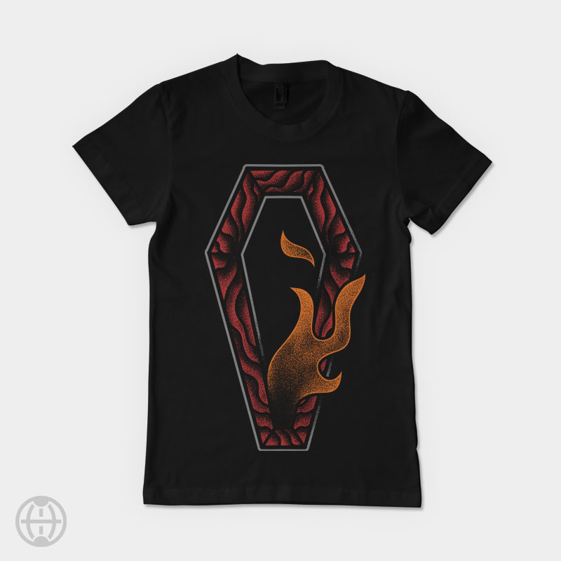 Coffin T-shirt design template with raster file. you can add the text or changed the text. three color design you can use this design for screen printing and digital printing. hope you like it thanks