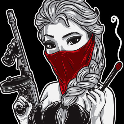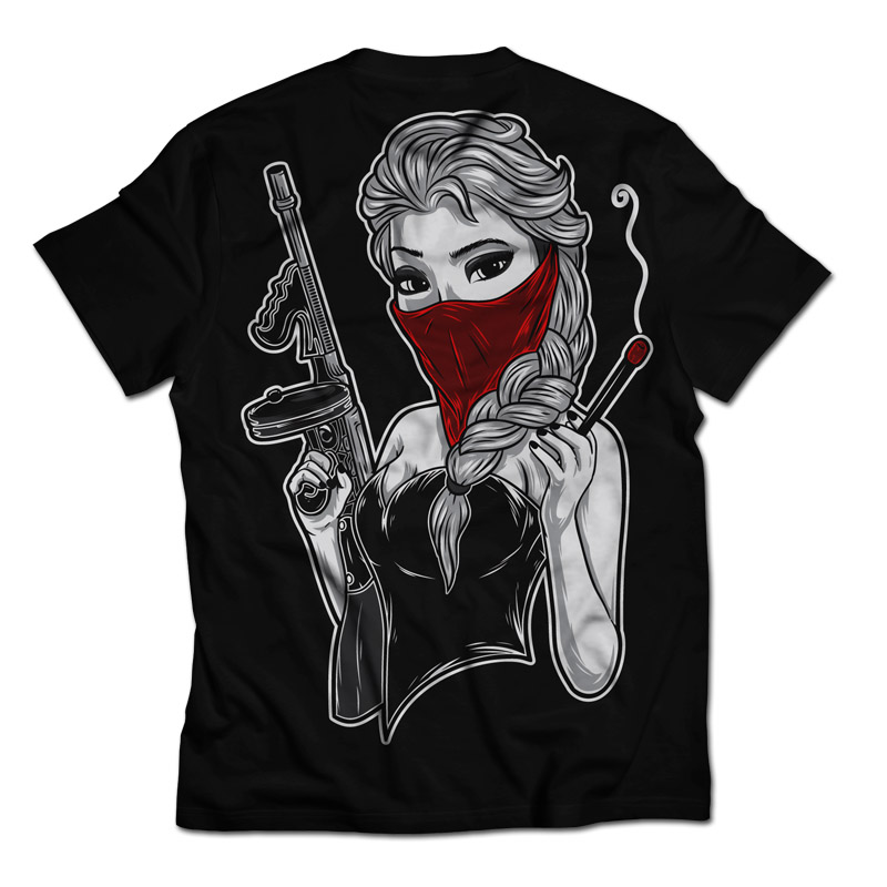 Cold Gangster Princess. A funny character style illustration. Rebel Princess collections. Easy to add the text and replace colors. ZIP Features contain 1 EPS 10 1 Ai 1 PSD Size 16'x24' CMYK Color mode Layered