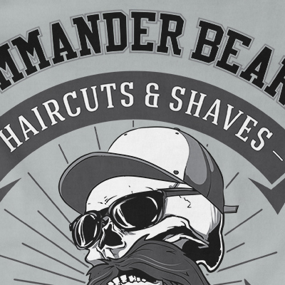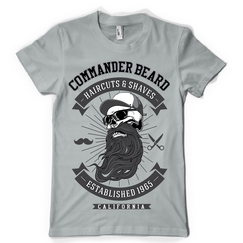 Commander Beard t-shirt design features a detailed screen print of bearded skull now available for Adobe Illustrator, Adobe Photoshop and Corel Draw and can be used for digital printing and screenprinting .