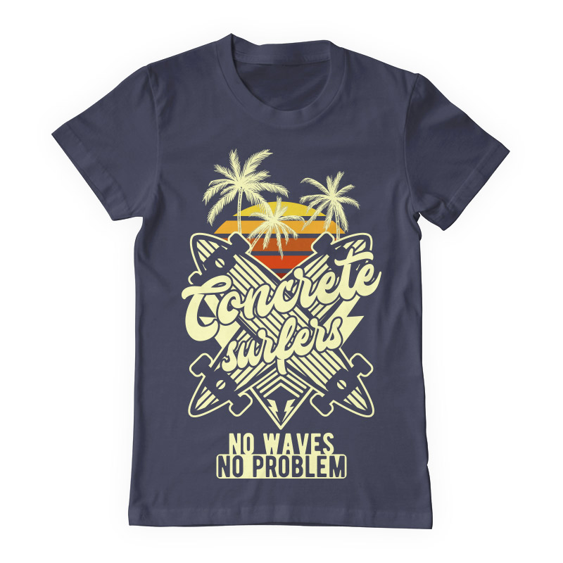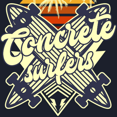 "Concrete surfers" design is available in high quality files, such as Ai,EPS, PDF and PNG. Vector files contain the design with all editable elements. You will find the design for light and dark colors. Can be used for both digital and screenprinting.