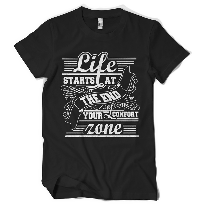 Confort zone graphic design template in vector format, featuring detailed positive message now available for Adobe Illustrator, Adobe Photoshop and Corel Draw and can be used for digital printing and screenprinting .