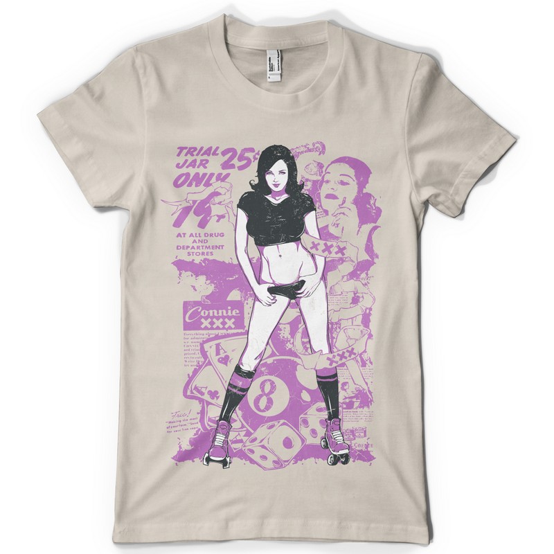 Connie eight graphic design template in vector format, featuring detailed sexy woman now available for Adobe Illustrator, Adobe Photoshop and Corel Draw and can be used for digital printing and screenprinting .