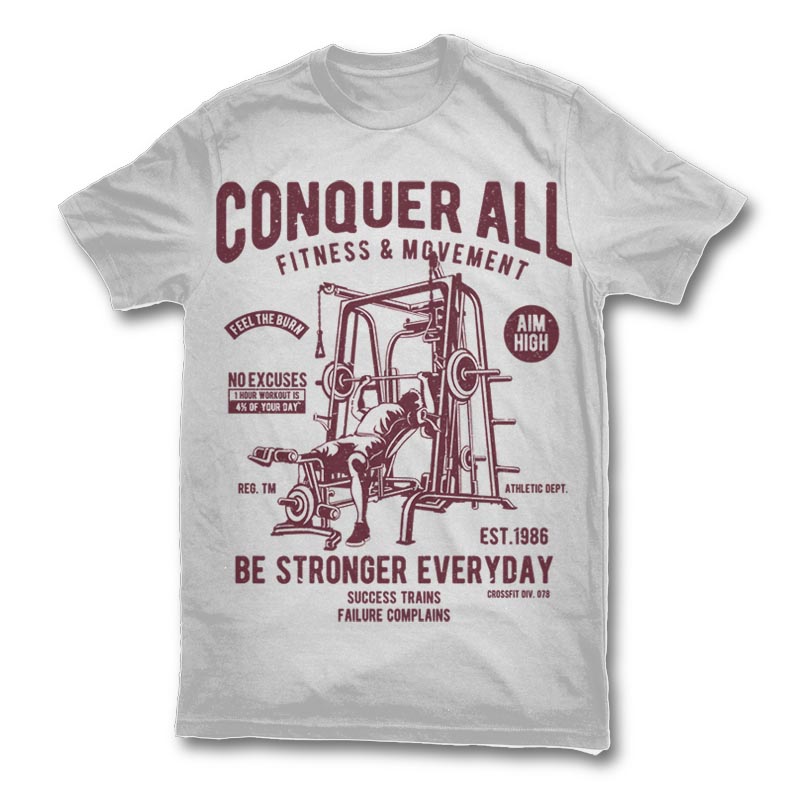 Conquer All Tshirt Design Template based on vector files , such as AI and CDR also with PSD separated Layers file, the design has 3 color print, it can be used for digital printing and screen printing.
