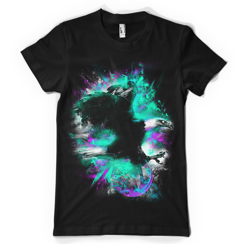 A unique illustration of an eagle soaring high above the galaxies with unique geometric neon highlights that symbolizes the universe and its constellations.