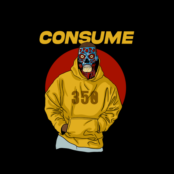 This design “ consume ” is made in Adobe Photoshop is ready for print.