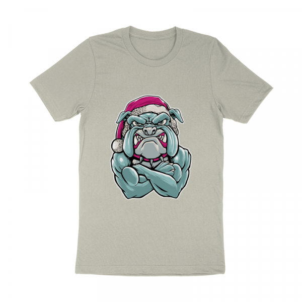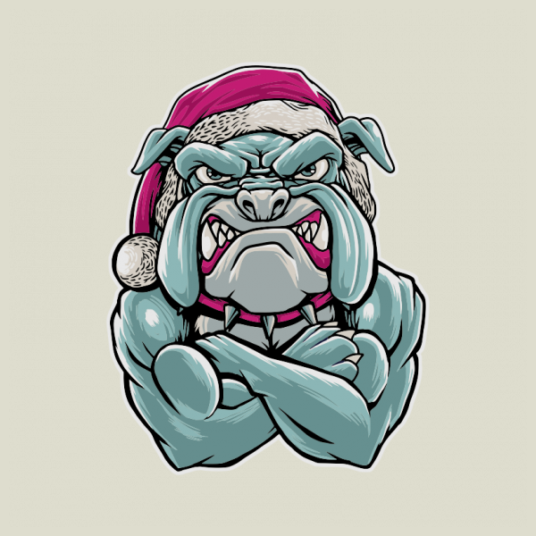 cool santa bulldog is a unique illustration of a lovely pet, a scary bulldog, but packaged in funny visuals, with santa attributes, perfect and cool to print on a t-shirt, to celebrate your christmas, available in Ai, eps format , CDR and PNG