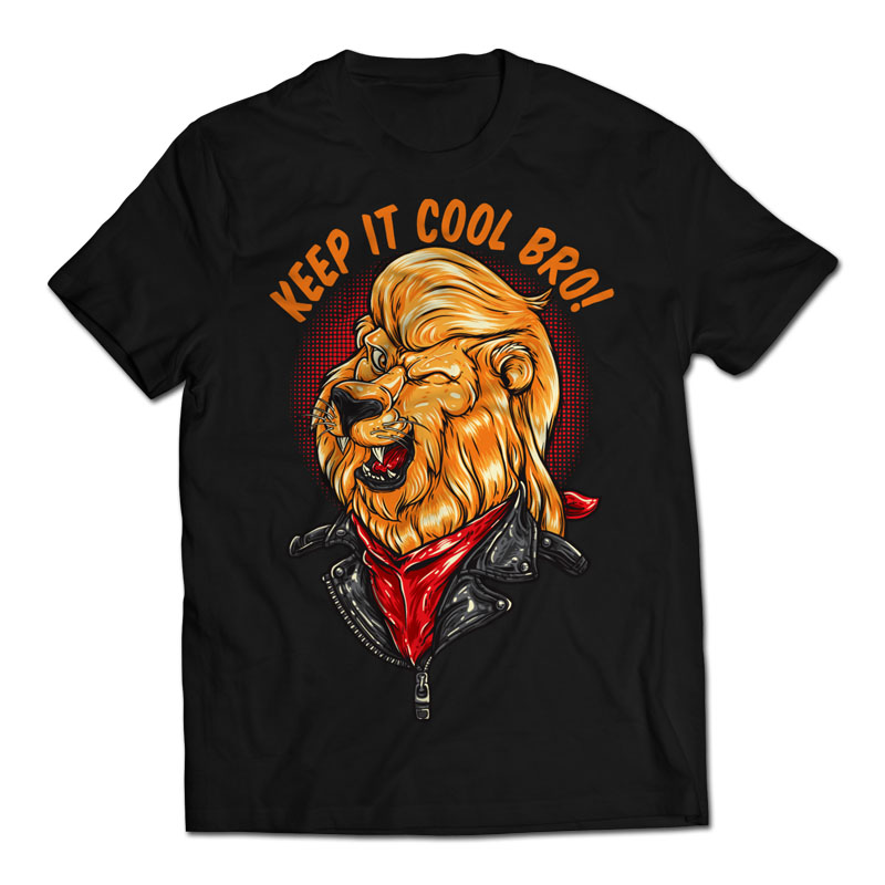 Cool Lion. An illustration of Lion wearing leather jacket. Works with dark and light backgrounds. Easy to customize. 1 PSD, 1 Eps 10, 1 Ai layered file.