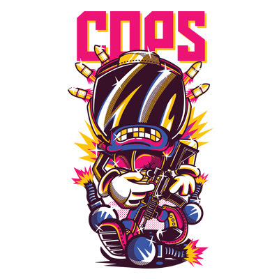 COPS with Urban colorful style. Cool vector design that looks funny and joyfull. Based on vector file, easy to resize and edit. File features AI, EPS, and PNG all in zip, CMYK color mode and 6 colors print. font link included on readme file. Cheers!