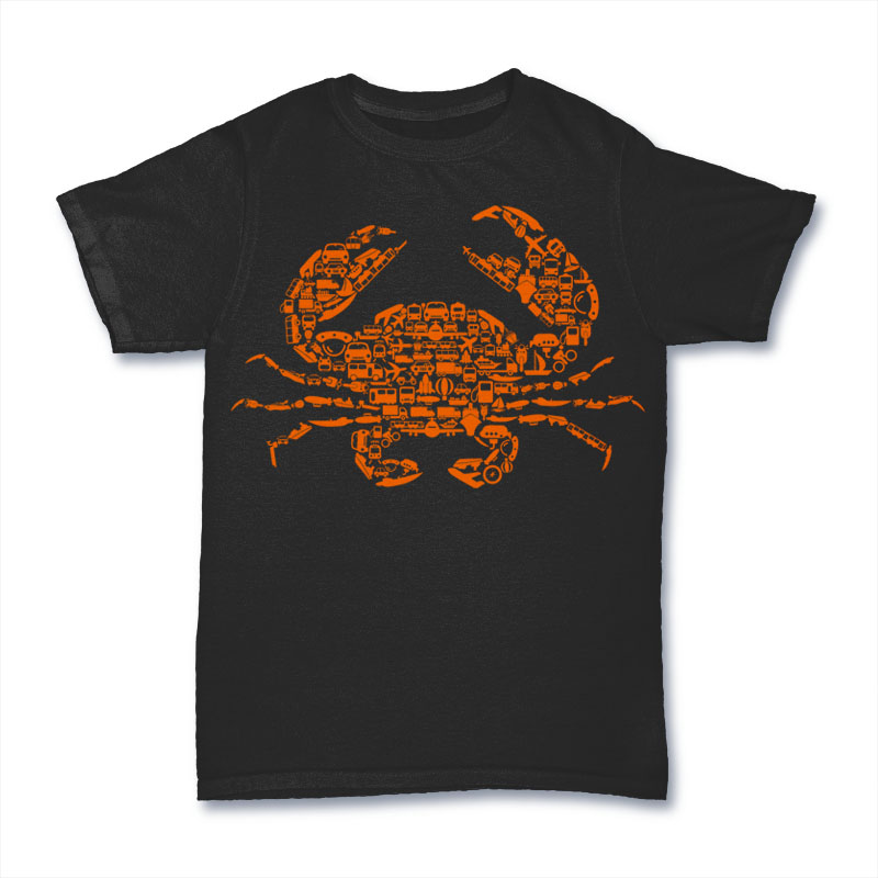 Crab artwork Tshirt Design Template with 1 colors print .The files are CDR, AI, PSD file. Hope you like my artwork.Recommended for digital printing / DTG and screen printing