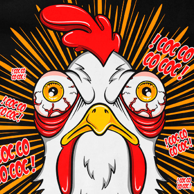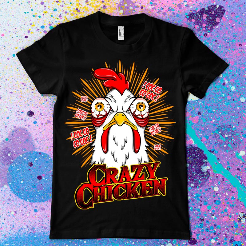 Crazy Chicken t-shirt design features a chicken design detailed screen print now available for Adobe Illustrator, Adobe Photoshop and can be used for digital printing and screenprinting.