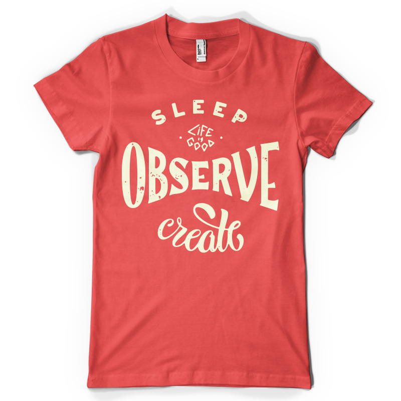 "Create" T-shirt design featuring typography style quote, with distressed details. The files available are suitable for Adobe Illustrator and Adobe Photoshop and can be used for digital printing and screenprinting.