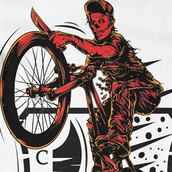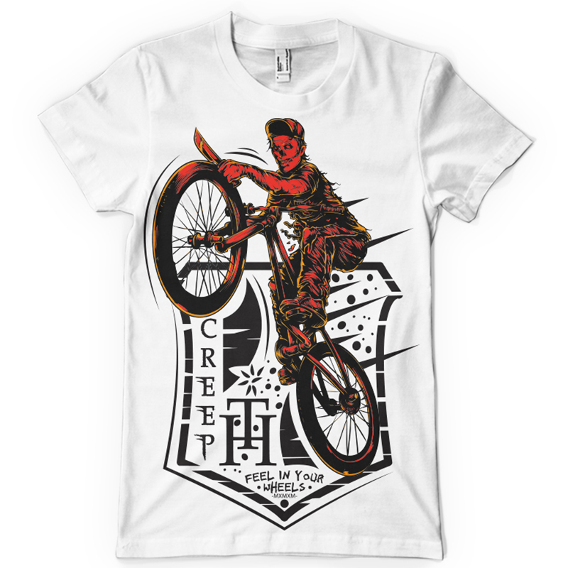 Creepy biker printed t-shirt features a detailed screen print of zombie biker is now available in EPS format file and can be used for digital printing and screenprinting . Ready to print or use in anything you want.