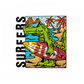 CROCO SURFERS illustration, Available AI, CDR and PNG, With a large resolution and can be accessed with AI and CDR.