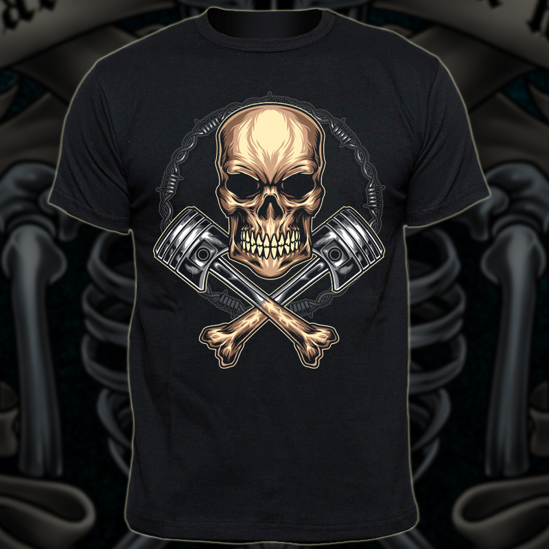 Cross Bones Piston T-shirt design Template with Adobe Illustrator, the file is Ai separated Layers and Eps. Can be used for digital printing and screen printing.