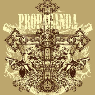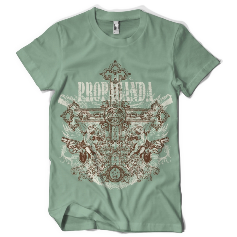 Crossing guns is a digital design featuring the mirror effect: angels, guns and a cross make part of the propaganda. The t-shirt template will be available in vector format for Adobe Illustrator, Adobe Photoshop and Corel Draw and can be used for digital printing and screenprinting .