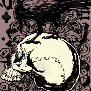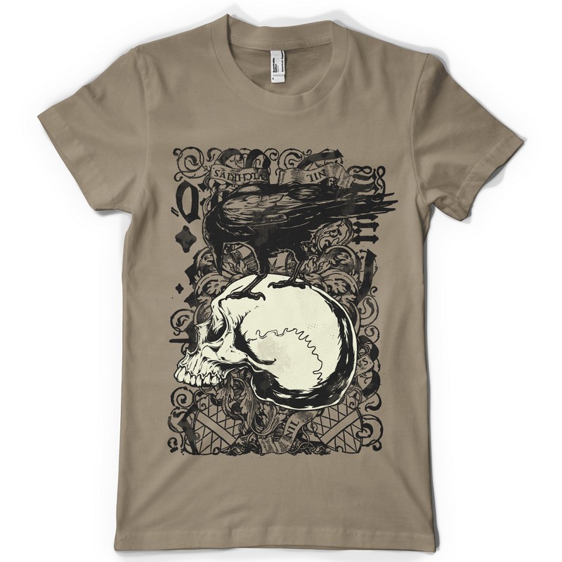 Crow skull design template in vector format, featuring detailed crow on top of a skull now available for Adobe Illustrator, Adobe Photoshop and Corel Draw and can be used for digital printing and screenprinting .
