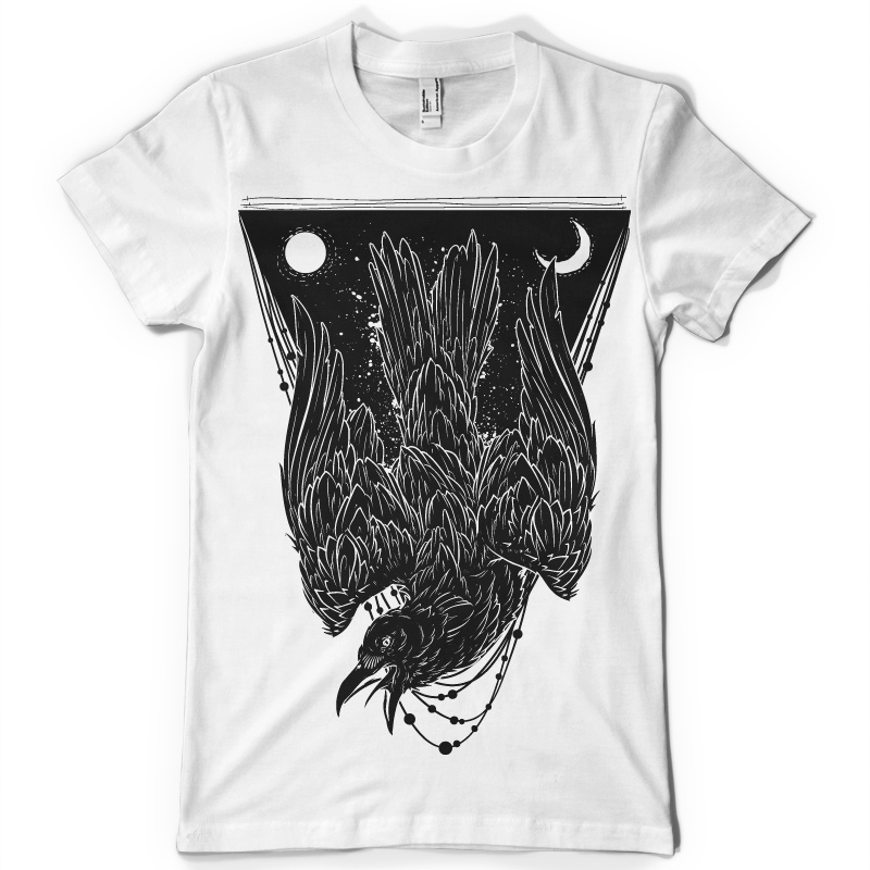 Crow t-shirt design in vector format.The artwork is featuring a detailed crow drawing .This is an Adobe Illustrator file, ready for print. Files included are Eps. The template can be used for digital printing and screenprinting.The file is well organised with every element on its own layer.