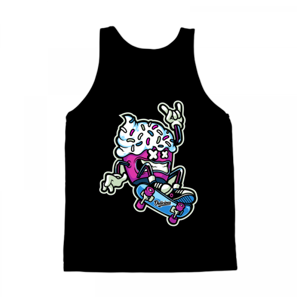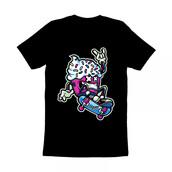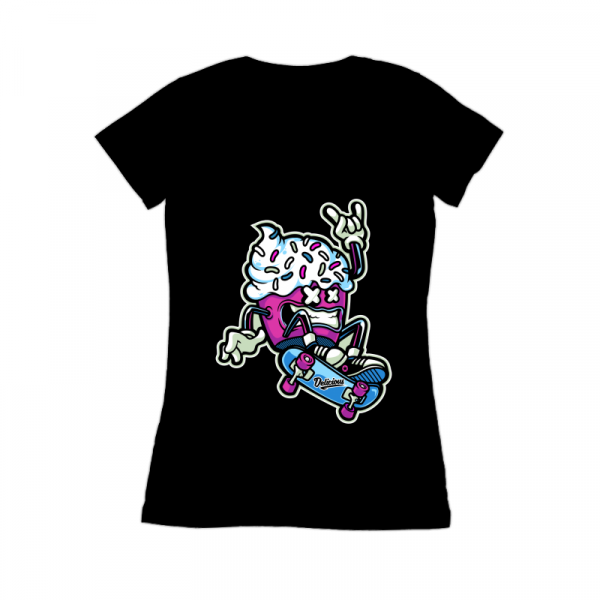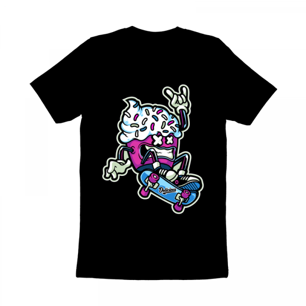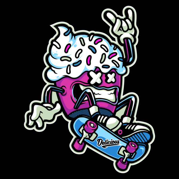“CUPCAKE SKATEBOARD ” Cartoon style. such as Ai,EPS,CDR, PDF and PNG Transparent. the design has 5 colors on black T-shirt. print it can be used for digital printing and screen printing