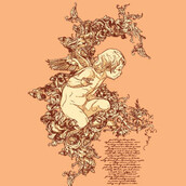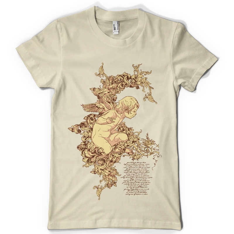 Curious Angel t-shirt template in vector format, featuring detailed curious angel now available for Adobe Illustrator, Adobe Photoshop and Corel Draw and can be used for digital printing and screenprinting .