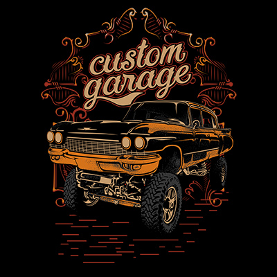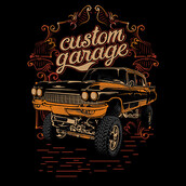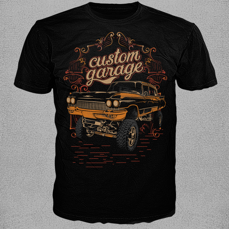 Custom GarageDesigned (psd.) easy editable vector so colors and size easy editable for any shirt colors.