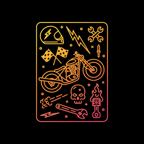 Custom Motorcycle Garage 1 is a monoline illustration that is suitable for apparel or merchandise about motorbike, motorcycle, bike, biker, rider, garage, helmet, chopper, bobber, race, sport, cafe racer, cruiser, piston, vehicle.