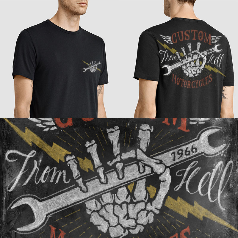 * Custom Motorcycles * is part of my Vintage Series designs, a collection of handmade classic imagery, scanned at the highest resolution. Being handdraw gives it an unique texture. It comes on a PSD file, colors are separated in layers, ready to print. It can also be autotraced in Illustrator with optimal results.