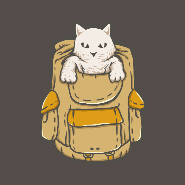 Cute Cat Backpack is a vintage illustration that is suitable for t-shirts, jackets, or merchandise with the theme of cat, cats, dog, animal, wild, wildlife, pet, pussy, kitten, feline, cute, backpacker, adventure, camping, hiking.