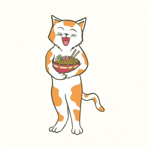 Cute Cat with Ramen is a vintage handdrawn illustration that is suitable for apparel or merchandise about animal, cat, meme, funny, ramen, noodles, ramen noodle, pet, food, beverage, japanese, kawaii, manga.