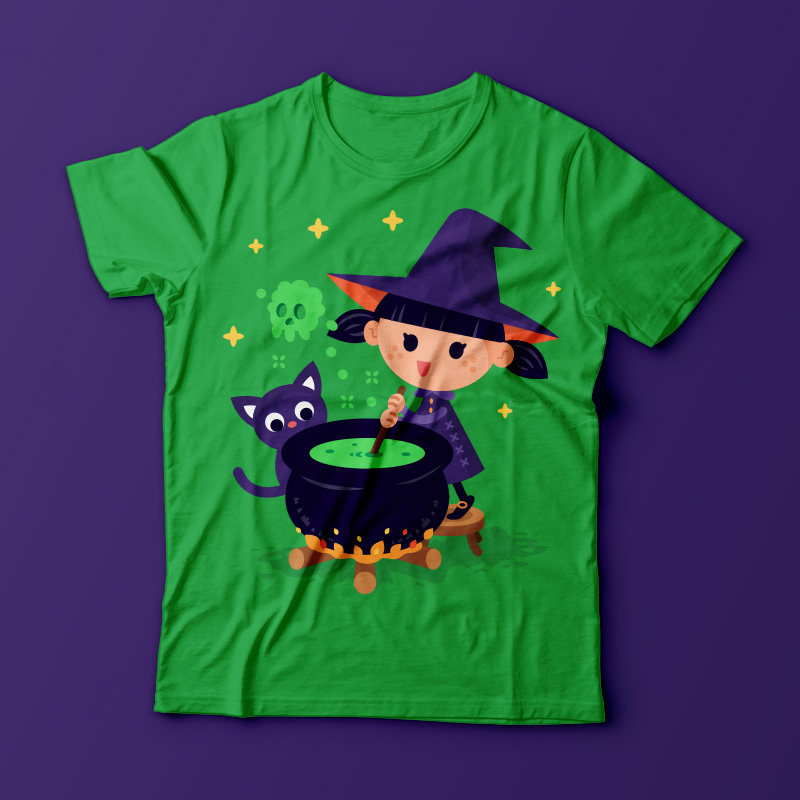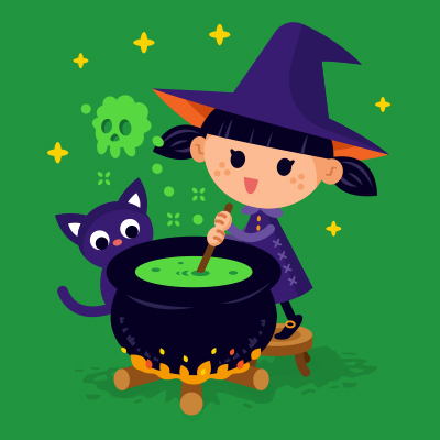 Cute little children Witch prepare a potion with her kitty, perfect for Halloween!