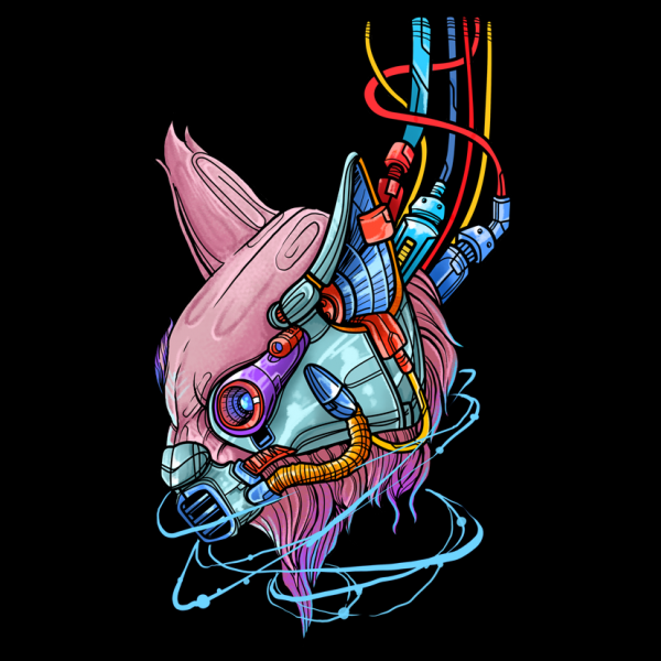 cyborg cat design is an illustration design. These files include PSD and PNG with a transparent background. Perfect for digital printing and screen printing.