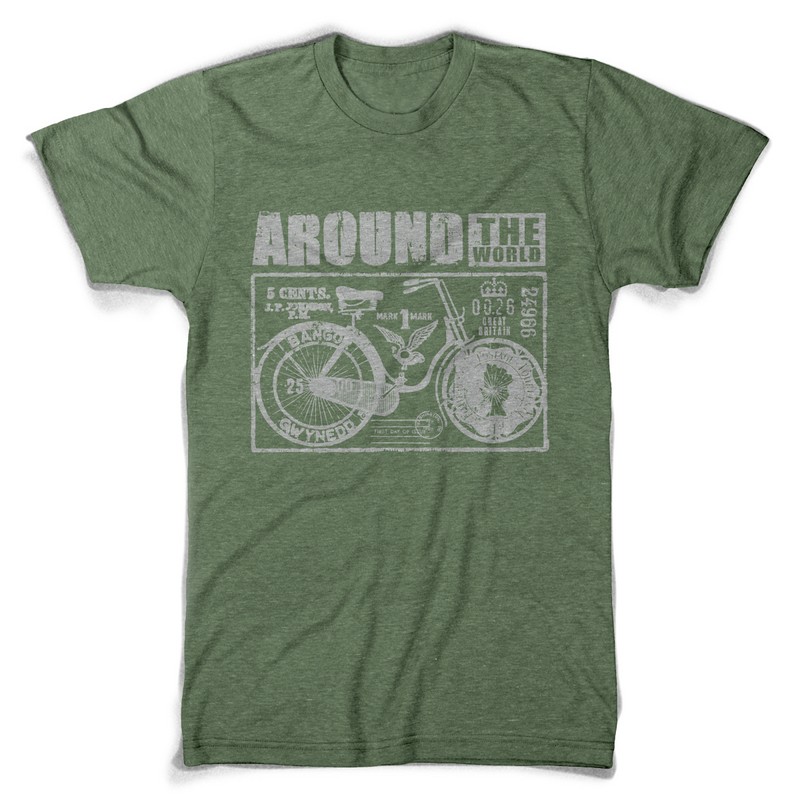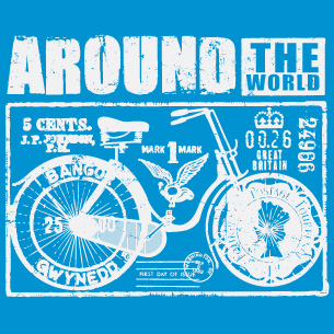 Cycle around the world design template in vector format, featuring detailed pimped bicycle now available for Adobe Illustrator, Adobe Photoshop and Corel Draw and can be used for digital printing and screenprinting .