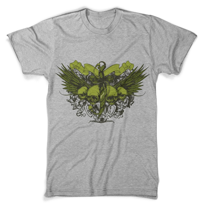 Dagger t-shirt design template in vector format, featuring detailed dagger arounded by a crowd of skulls now available for Adobe Illustrator, Adobe Photoshop and Corel Draw and can be used for digital printing and screenprinting .