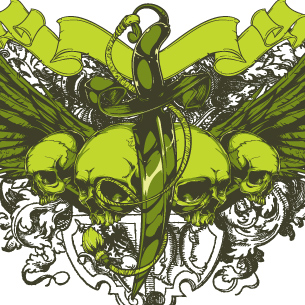 Dagger with skulls on a vintage wing background