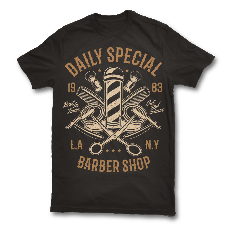 Daily Special Barber Shop Tshirt Design Template based on vector files , such as AI and CDR also with PSD separated Layers file, the design has 2 color print, it can be used for digital printing and screen printing.