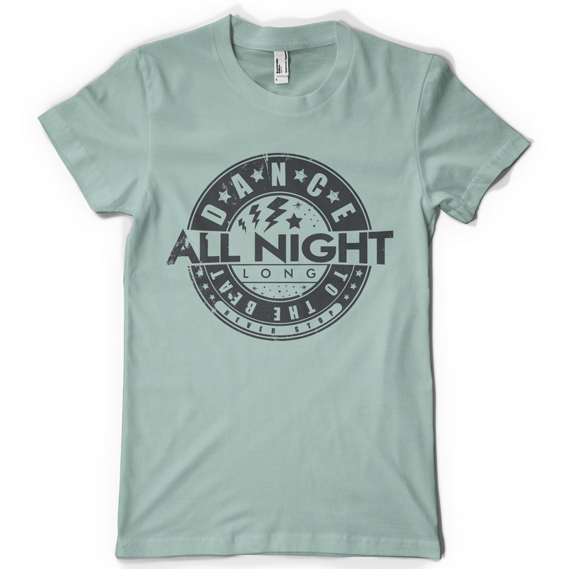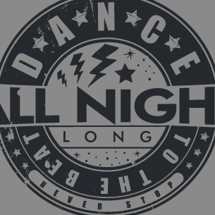 Dance all night graphic design template in vector format, featuring detailed music typography now available for Adobe Illustrator, Adobe Photoshop and Corel Draw and can be used for digital printing and screenprinting .