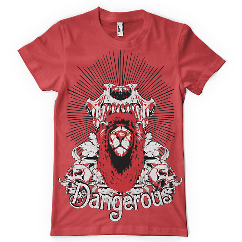 Dangerous printed t-shirt features a detailed screen print of dangerous lion now available for Adobe Illustrator, Adobe Photoshop and Corel Draw and can be used for digital printing and screenprinting . Ready to print or use in anything you want.