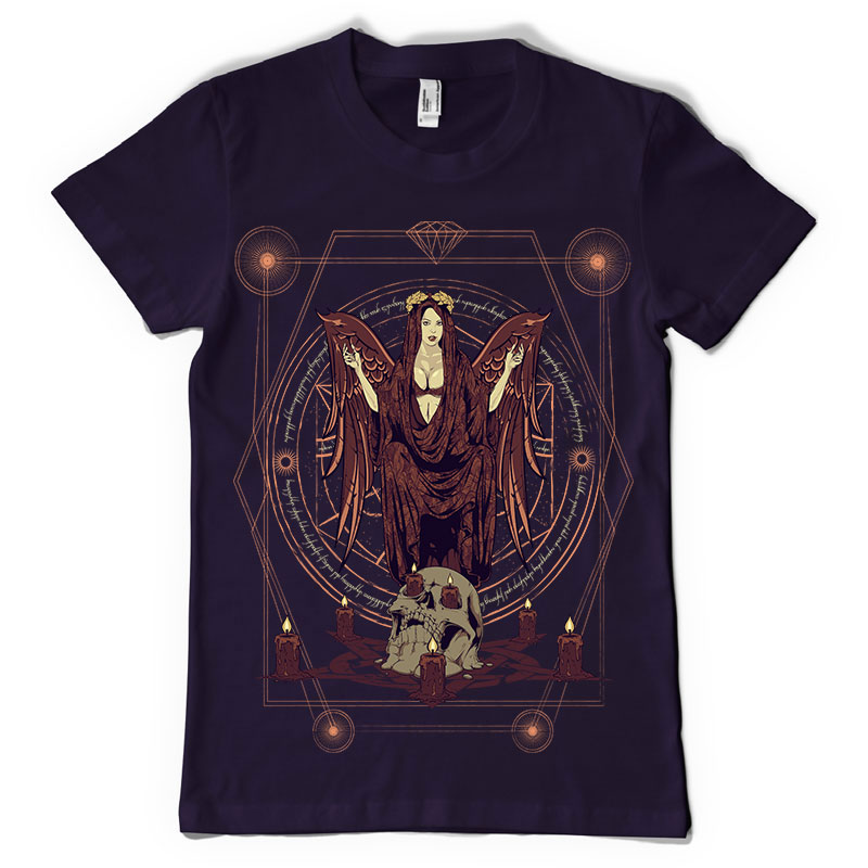 Dark Angel t-shirt design features a detailed screen print of sexy angel of death now available for Adobe Illustrator, Adobe Photoshop and Corel Draw and can be used for digital printing and screenprinting .