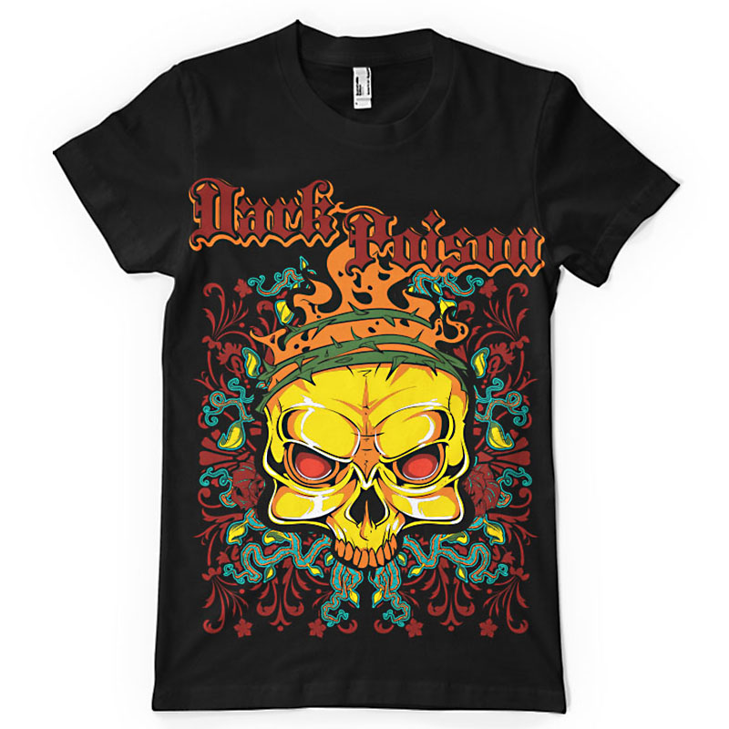 Dark Poison printed t-shirt features a detailed screen print of mad skull now available for Adobe Illustrator, Adobe Photoshop and Corel Draw and can be used for digital printing and screenprinting . Ready to print or use in anything you want.