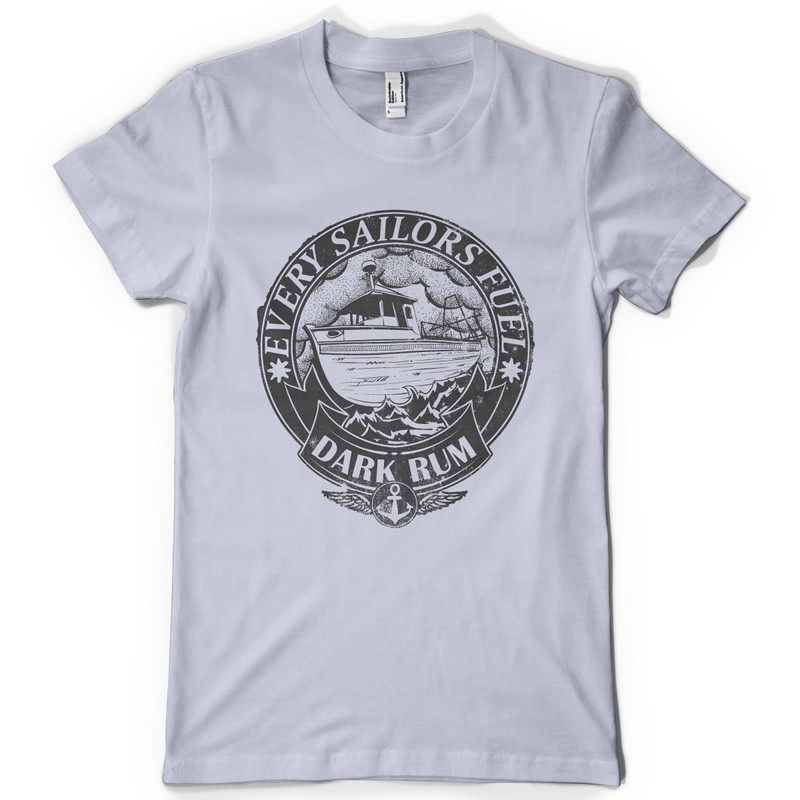 Dark Rum graphic design template in vector format, featuring detailed sailorboat now available for Adobe Illustrator, Adobe Photoshop and Corel Draw and can be used for digital printing and screenprinting .