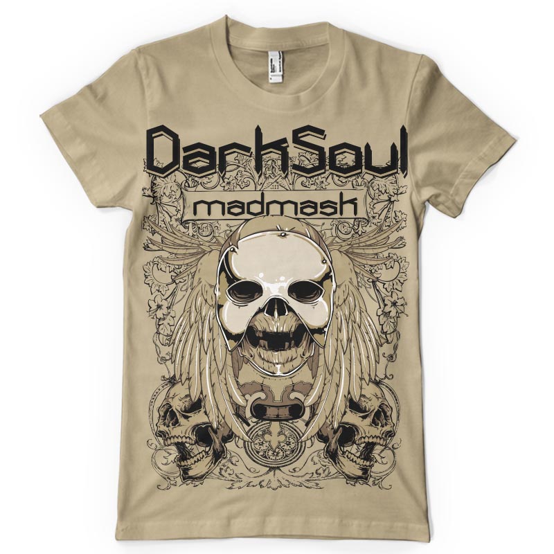 Dark soul t-shirt print features a detailed design available for Adobe Illustrator, Adobe Photoshop and Corel Draw and can be used for digital printing and screenprinting . Ready to print or use in anything you want.