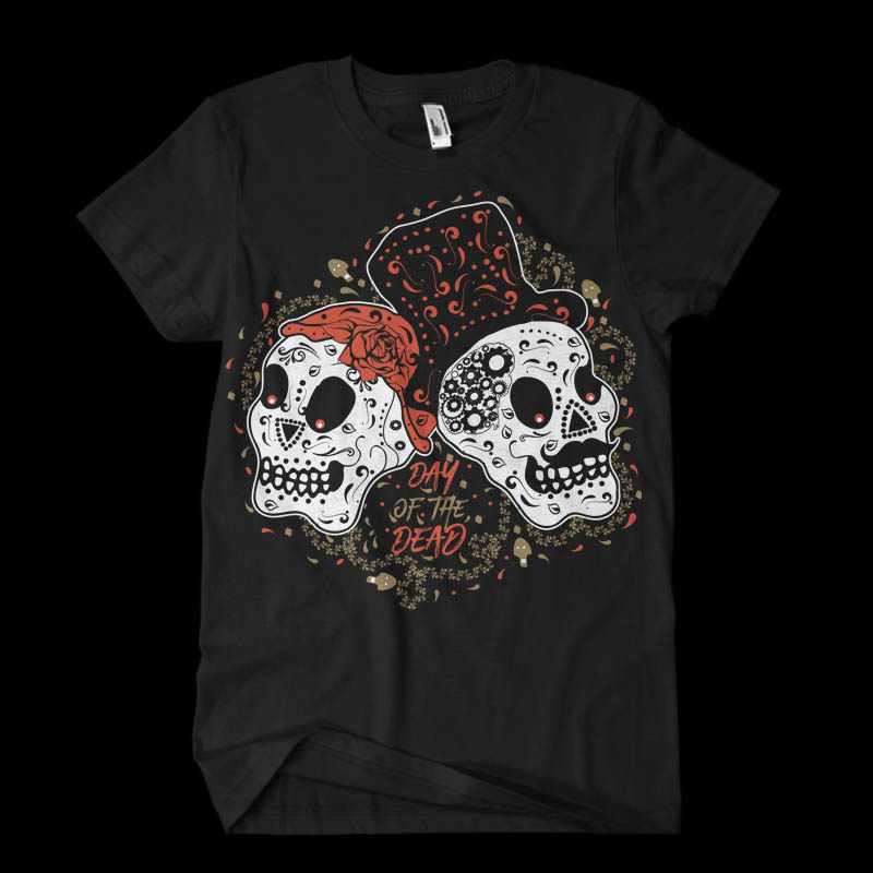 Day of the Dead shirt design featuring typography style quote, with details. The files available are suitable for Adobe Illustrator and Adobe Photoshop and can be used for digital printing and screenprinting.