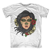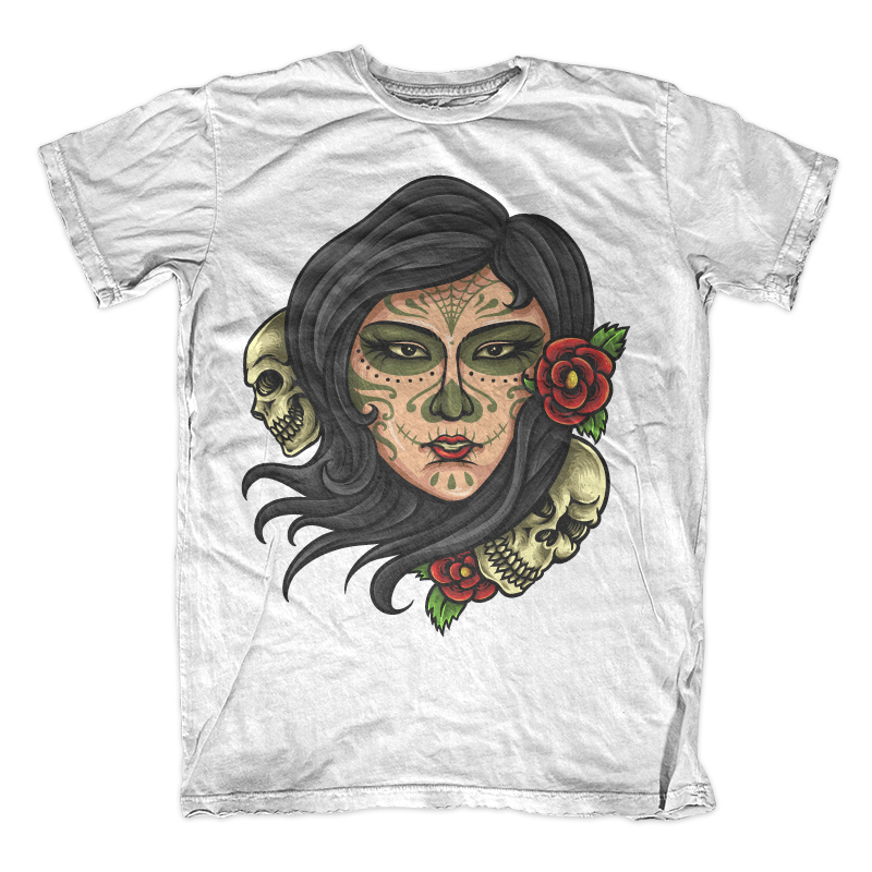 Illustration of woman with day of the dead mexican tradition make up with tattoo style drawing. Ready to print on t-shirt.