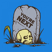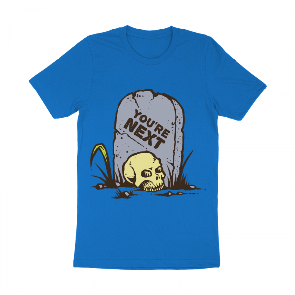 Vector illustration of skull in the graveyard in retro graphic style. Ready to print on t-shirt.