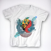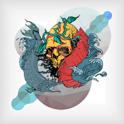 Dead Fisher t-shirt design. Digital illustration featuring detailed fish and skull with sea wave. The source file is available in psd format and can be opened with Photoshop program.