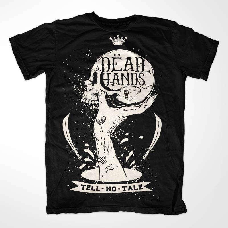 Dead Hands printed t-shirt features a detailed screen print of hand holding skull now available for Adobe Illustrator, Adobe Photoshop and Corel Draw and can be used for digital printing and screenprinting .