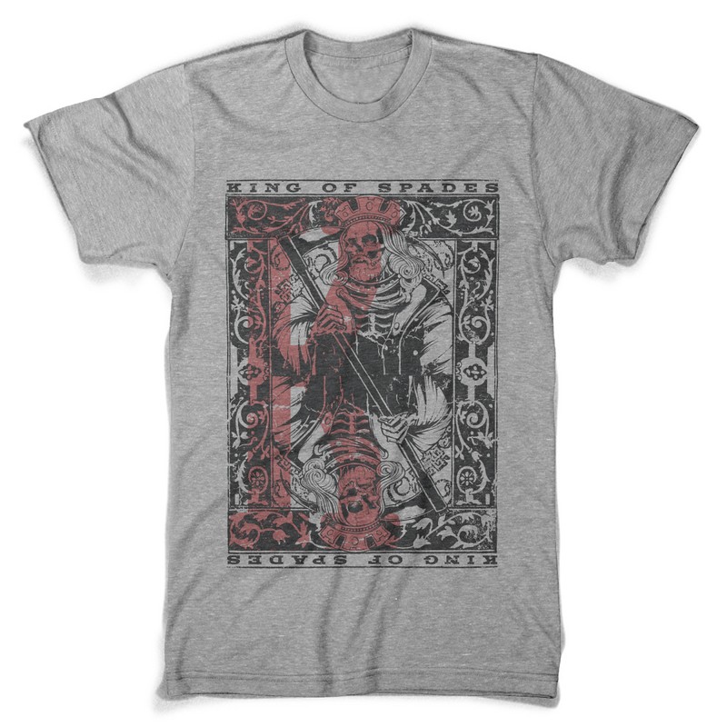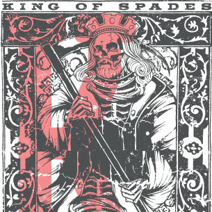 Deadly king of spades graphic design template in vector format, featuring detailed mad skeleton now available for Adobe Illustrator, Adobe Photoshop and Corel Draw and can be used for digital printing and screenprinting .