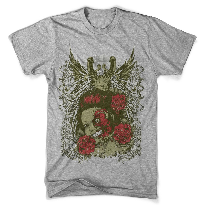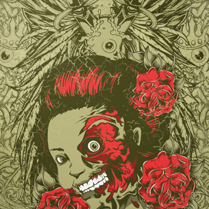 Deadly rose graphic design template in vector format, featuring detailed creepy smiley girl now available for Adobe Illustrator, Adobe Photoshop and Corel Draw and can be used for digital printing and screenprinting .