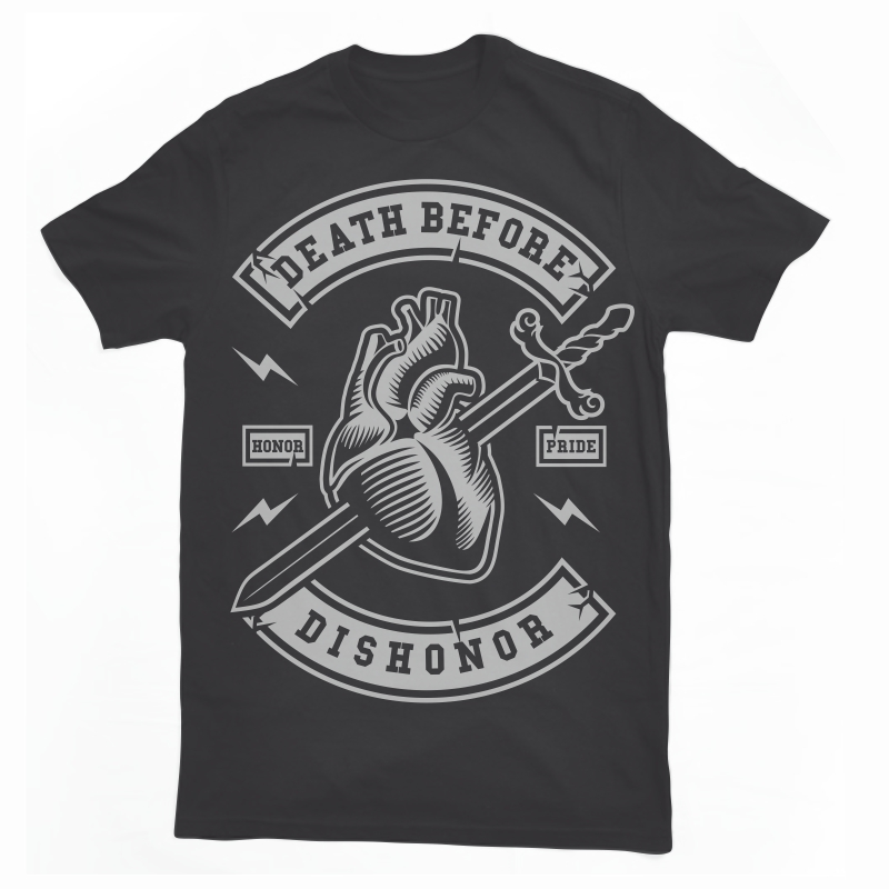 Death Before Dishonor T-shirt design template with CorelDraw or Adobe Illustrator. 1 colour print, CDR,AI,PSD separated Layers. Can be used for digital printing and screen printing.
