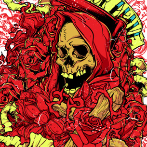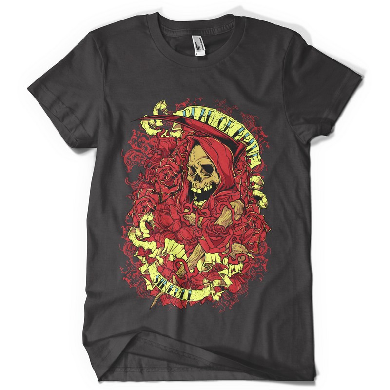 Death comes for you graphic design template in vector format, featuring detailed red grim reaper now available for Adobe Illustrator, Adobe Photoshop and Corel Draw and can be used for digital printing and screenprinting .