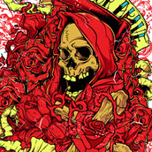 Death with scythe on a flourish background